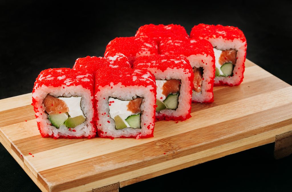 Филадельфия Тобико 1+1=1 750 ₽ 1 500 ₽ В корзину Купить в 1 клик В корзину Купить в 1 клик Описание Описание Лосось, масаго, сливочный сыр, огурец