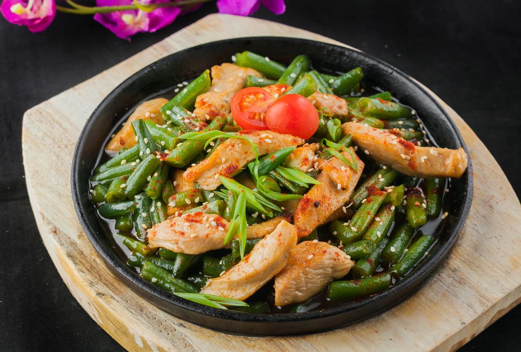 Тори Терияки (250 г.) 460 ₽ В корзину Купить в 1 клик В корзину Купить в 1 клик Описание Описание Куриное филе, стручковая фасоль, черри, соус Терияки, шерачи